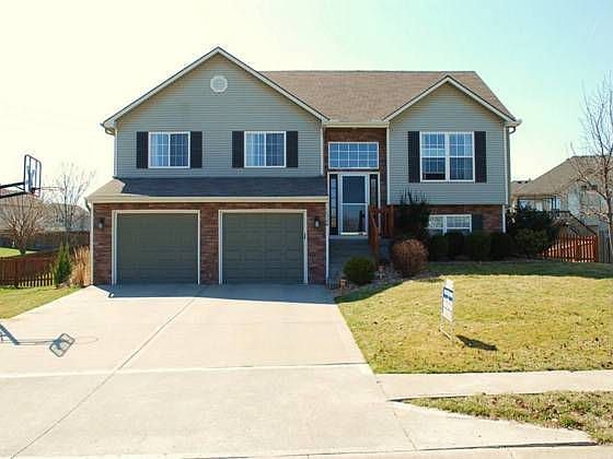 Feature-rich home with 4 bedroom and 3 bath, and a finished walkout basement. Open floor plan with vaulted ceilings, kitchen has hardwood floors and granite counter tops, and opens to deck for easy access to barbecue and eating outside, with partly covered patio area below. Master bedroom has two closets, including one large walk-in, and a private master bath with vessel sinks and bronze fixtures. All baths have granite vanities. Large lot, yard has been professionally cared for and is in wonderful condition. Garage has lots of space, including two storage rooms. Home has Google fiber available (gigabit internet), and alarm system with automated interior and exterior lighting, and fireplace in upstairs living room. Neighborhood pool is available.