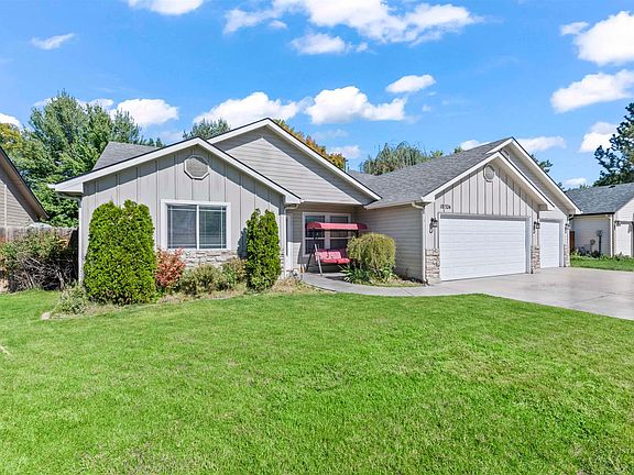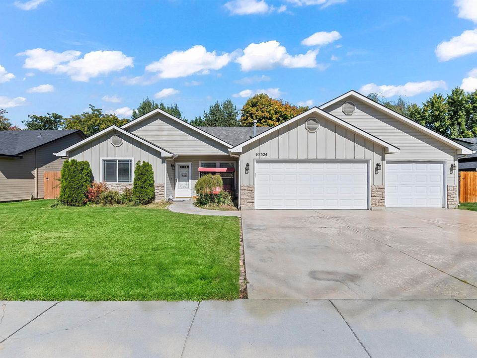 This single-level home is nestled in the serene and well-maintained Charleston Village neighborhood of Southwest Boise. The living room features a cozy fireplace and vaulted ceilings, seamlessly connecting to an informal dining area and kitchen, with an adjacent pantry. The master suite offers a double vanities and a walk-in closet. Step outside to a private backyard oasis, complete with a large extended patio and beautifully mature landscaping, perfect for relaxation or entertaining. The property is situated in a peaceful neighborhood characterized by wide streets and mature trees, fostering a tranquil community atmosphere. Conveniently located, this home provides easy access to nearby amenities, including an elementary school, middle school, and high school. Grocery stores, Costco, and a shopping mall are just a 5-minute drive away. Downtown Boise and Meridian are a quick 20-minute commute, while Boise Airport and Gowan Field are only 15 minutes away.