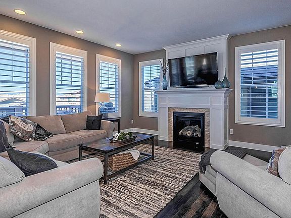 Quiet, desirable Meridian neighborhood home, spacious 2 story backing to open cul-de-sac, panoramic mountain view. Close to community pool & park, east facing home with walkout basement. White plantation shutters throughout the main floor. Great natural lighting throughout the whole entire home, hickory wood floors, gas fireplace, very large and beautiful white mantel. Kitchen with spacious kitchen island and granite counter tops, white cabinets, stainless steel appliances, gas stove, tile backslash, walk in pantry, sliding glass door to deck. Fully finished walk out basement includes a huge living room area space, wet bar/raised breakfast bar/small kitchen space. Granite counter tops, stainless steel dishwasher/sink/wine cooler, perfect for entertaining, and a sliding door leading to back patio. Within 3 mile radius of all Douglas County Schools.