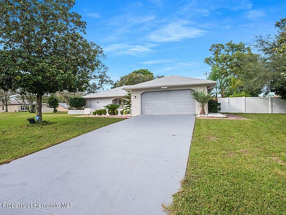 Active with Contract - Accepting Back Up Offers. PRICE IMPROVEMENT! Welcome home! This Beautiful Remodeled 3 bedroom POOL home, is located on a corner lot in Spring Hill with NO HOA! As you walk into this home you will see the pride in ownership! Move right in and not worry about having to do any updating. This home has it all with high end finishes. The front foyer tile has been tastefully added with a custom design. The bright spacious open floor plan with cathedral ceilings, is perfect for entertaining and has stunning views of the pool. The kitchen has been updated with white cabinets, beautiful quartz countertops, and BRAND NEW stainless steel appliances. The master bedroom has a slider that leads out to the pool, and the master bathroom has been tastefully updated and has a vanity with double sinks with a granite countertop. Relax and enjoy your Florida summers in your swimming pool. The backyard is fully fenced in with a privacy fence. New roof in 2021, New flooring throughout, New garage door, New patio floor, New water heater, Updated guest bathroom, updated lighting, and fully painted inside and out. Don't miss out, this home will not last!