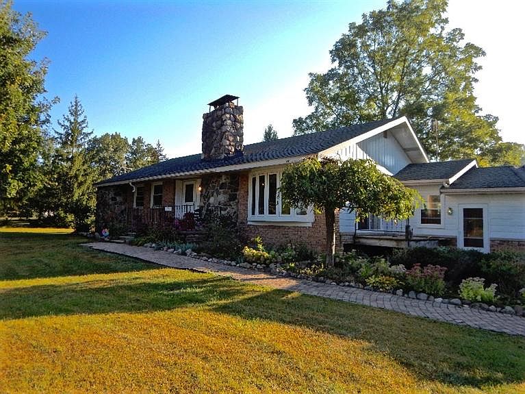 Great location for this ranch home in York Township. Property is located within 5 minutes of the Toyota Tech Center and US 23, between Saline and Milan. Large lot almost 5 acres with fruit trees, blueberries, several Walnut trees, and is landscaped with a variety of perennials. The home has hardwood flooring throughout the first floor. Nice open living area featuring a fireplace with a wood burning insert. The kitchen has cherry cabinets and hardwood flooring, with a door wall that leads out to a large deck on the back of the home. Three bedrooms share a completely renovated full bath with tile flooring and a Jacuzzi tub. Large 2.5 car garage attached to the house by a breezeway that makes a nice mudroom area. Full basement with plenty of storage space, and has a second fireplace. Other updates in the last few years include windows, roof and water heater that was replaced in the last 2 weeks.