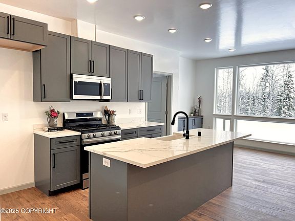 Energy efficient In-floor heating; 980 sq ft shop with 10' ceilings; WIFI compatible breaker panel wired for 220v welding outlets or EV charging; Calacatta quartz countertops; Built in safe, etc.This smartly designed shop/house is a beautiful addition to the well-established and relaxed Forest Lakes subdivision. Set well enough back from the road with new topping on the driveway, you will enjoy agreat deal of privacy that few others have. (This could be an excellent base for all your Alaskan adventures). The first floor features a 980 square foot shop with 10' ceilings. This creator space is large enough for full size trucks, storage, a work bench and space to work on those projects in comfort. The breaker panel is WIFI compatible and is wired for EV charging or a 220v welding outlet. A half bath with laundry hookups is located adjacent to the garage. The mechanical room is well stocked with the very best equipment available for ease of use with energy efficient in-floor heating. Upstairs you have the kitchen which is the heart of the home. Hardwood cabinets with soft close hardware and topped with Calacatta quartz countertops make this space a dream to entertain in. To one side you have a full bath and bedroom for children or guests. On the other you have the dining area, office/pantry and living room. The living room area is bathed in light and beautiful views thanks to the floor to ceiling window wall. The entertainment nook is wired for high-speed data and features matching built-in storage with a butcher block top. As you move into the master bedroom you may admire the fancy lighting or the view from your private balcony; or if you're like me your attention will immediately travel to the built-in wall safe. That's right, a built in, high security vault in your very own bedroom. The privacy and space continue into the master bathroom with double vanities, linen storage, a generous walk-in closet and a dedicated makeup counter. The shower is luxe with polished tile and double shower heads that are individually controlled for temperature and pressure for the ultimate experience. This home is currently 99% complete and construction will be done in the next few weeks.