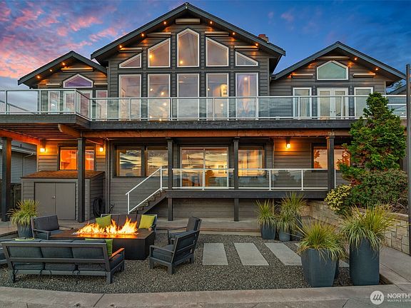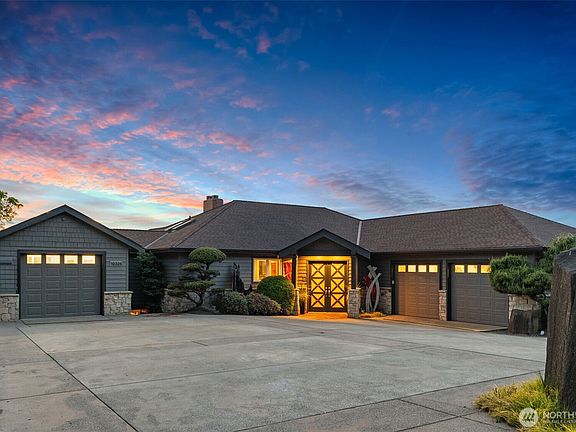 Breathtaking Vistas of Puget Sound and Olympic Mountains. Beautifully designed N.W. Contemporary Rambler with Daylight basement. Artfully Landscaped. Enjoy this Amazing home with focus in every room on the views. Great Room Living room with Gas Fireplace, Dining Room and Open Kitchen designed for Entertaining. Savor sunsets from the expansive Deck. Retreat to the Main Floor Main Suite with Spa inspired Bathroom. Main Floor Office/Den. Lower Floor Sunken Gathering Place and Large Family Room with Bar. 3 Additional Bedrooms and Bath. 3 Car Garage, Sport/Pickleball Court. Outdoor Entering in the Waterside Sure to Make Guests Say Wow. Kitchen, Fireplace. Plus A firepit for late night conversation. Soak in this masterpiece, relax and unwind.