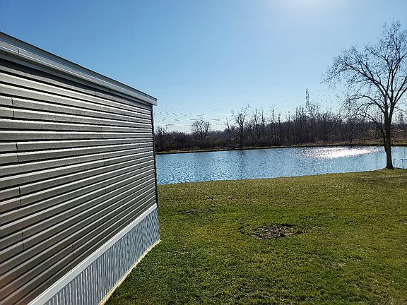 On the pond! NEW 2021 Champion high quality home - Upgraded color, stainless steel appliances, drywall upgrade, central A/C and heat, custom deck with stairs, a new shed, skirted, set and ready for it's owner!
