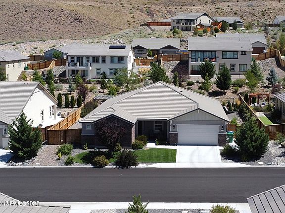 Welcome to easy, single-level living in coveted Damonte Ranch! Built in 2020, this beautifully maintained 3-bedroom, 2.5-bath home offers 2,607 sq. ft. of open, light-filled space designed for both comfort and entertaining. The gourmet kitchen is a true centerpiece with upscale finishes, generous counter space, under-cabinet lighting, and a seamless flow into the dining and great room—perfect for everyday living or gathering with friends. Step outside to a fabulous backyard retreat featuring a gazebo and a saltwater Caldera hot tub, all set against relaxing mountain views—your own private place to unwind under Nevada skies. Conveniently located near parks, trails, shopping, and dining, this home blends modern style with the lifestyle you've been looking for.