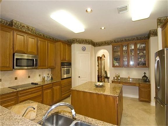Absolutely stunning 5 bedroom +study, and a 3 car garage home! Enter through the wrought iron, custom double door into a 2-story grand entry! Marble floors throughout the first floor, with custom inlay tile in the entry. Island kitchen with granite and stainless appliances open to large family room and breakfast area. Master bath includes double sinks, whirlpool tub, and separate shower, plus a large art niche! Gorgeous back yard retreat with a large covered patio and a fountain!