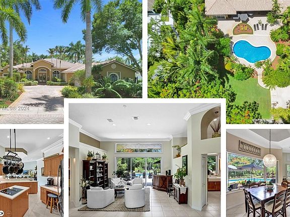 Private oasis in Davie's exclusive gated community of Westridge. Stunning ranch-style, pool home, 3,571SF 5BR/4BA, 3-car garage estate home. Nestled on builder's acre lush w/queen palms, fruit trees, creates serene, picturesque feel. Open kitchen w/baker's rack over center cooking island, many pantries, GE Profile appliances, a farmhouse sink, wood cabinets & white quartz counters. Perfect backyard for entertaining & relaxation. Freeform pool, covered patio, 1/2 court basketball (convert to tennis or pickleball) & lots of green space. Retreat to primary BR-opens to patio, walk-in closets, vanity area, step-up jacuzzi, twin sinks, water closet w/toilet & bidet. Generator & accordion shutters. 5th BR used as den. Only 98 homes. This Davie dream home ensures a tranquil & exclusive lifestyle.