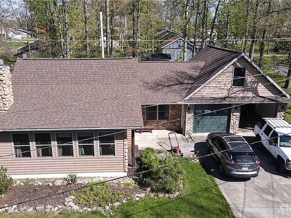 The most charming cabin with picturesque views of Indian Lake! The wrap-around windows greet you as you enter and offer stunning views of the surrounding nature, and the stone fireplace is perfect for evenings after being on the lake. The living room is open to the loft up above. The loft adds versatility to the space, whether it's for accommodating guests, setting up an office, or just extra storage. And a galley-style kitchen is efficient and practical for lake living. The large dining room with lots of windows is a bright and inviting space for enjoying meals with family and friends, and it is open to the family room. Plus, having a large primary bedroom with great natural light to wake up to each morning. The double lot with partially fenced yard and storage sheds offer plenty of outdoor space for enjoying the lake life to the fullest. And having a 2-car attached garage is definitely a bonus for all your water toys! It is a wonderful retreat for anyone who loves the tranquility and beauty of lake living.