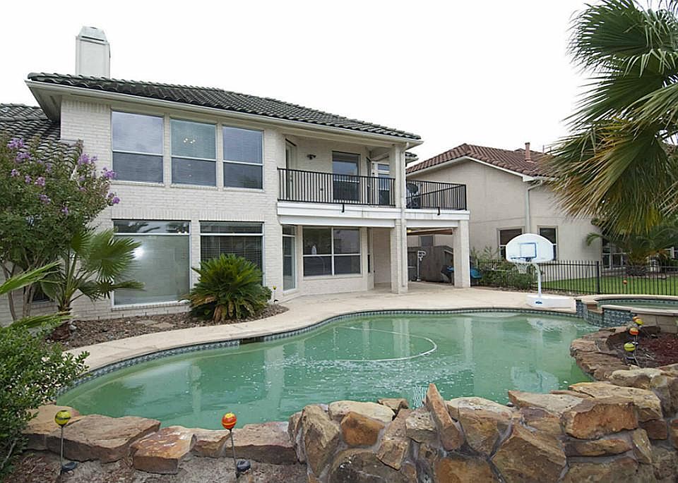 Beautiful living. 2-stry, 4 bdrm home on corner lot, Features vlt'd dual frml entry w/spiral staircase, ext tile flr, roman arches, hrdwd flr, plantation shutters, & ceiling fans. Open granite w/42'' hrdwd cabs, brkfst bar, SS appl, & tile bckspl. Fam rm w/tile hearth fp. Mstr suite & dayspa bth w/sep shwr, dual sinks, whirlpool tub, & WIC. Game rm up w/balcony. Bckyrd lakeview, poolside oasis w/rock waterfall pool/spa & est'd cov'd patio. Prof landscaped, fully fenced, & 2 car att'd garage.