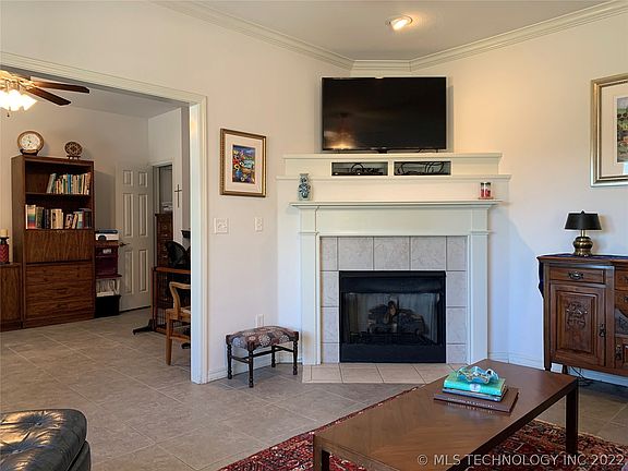 Lovely Spicewood Pond Patio Home. Well maintained with many upgrades including extended kitchen cabinets, granite counters, stainless appl and duel fuel range in kitchen. Open floor plan with split bedroom plan. Living room opens to dining and kitchen plus a bonus room. All tile with new carpet in bedrooms. Extended back patio surrounded by beautiful landscaping. Desirable 55+ neighborhood with HOA that includes lawn maintenance, pond, security gate, clubhouse with dining/game room and exercise room.