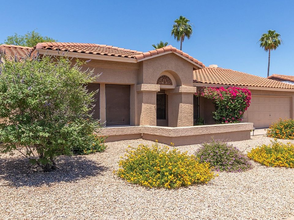 Great location and curb appeal for this lovely 4 bed, 2 bath home. Enter to formal living & dining with carpet & tile in all the right places. Spacious open floor plan for the kitchen, dining and family room is perfect for entertaining! The family room has a cozy fireplace. The eat-in kitchen has an abundance of custom cabinets, beautiful granite counters, island w/breakfast bar and SS appliances. Laundry is off the kitchen. Sizable secondary bedrooms. Master has private entrance, built-in entertainment center, full bath that includes a double vanity, soaking tub, separate shower and walk-in closet. The park like backyard has a covered patio, built-in BBQ and mature foliage. Easy access to shopping, medical and the loop 101. Call for a showing today!