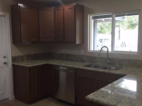 BACK ON THE MARKET...Great 3 bd 2 ba home , with open floor plan in nice neighborhood. Home has been extensively rehabbed. Kitchen features new dark wood cabinets, granite counter tops, new stainless steel appliances and recessed lighting. Both baths have updated granite counter tops and guest bath has a newly tiled custom shower. Fresh paint throughout, lovely tiled fireplace in living room, new flooring and lighting. Garage door has been replaced with remote opener, covered patio, storage shed and even a basketball court on side of house. House is completely fenced, including front access gates. This home is a must see, come and check it out, it will not last long!!