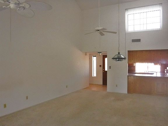 Live on the golf course at Mesa Del Sol. 2 car garage, private front fenced patio, spacious living and dining with vaulted ceiling and sliding doors to covered patio and golf course. Kitchen with tile floor, smooth top range, built in microwave and dishwasher. Bedrooms with mirror closet doors and ceiling fans. Hall bath with tile floor and tile tub surround. Master bathroom with double vanities, tile counter tops, tile floor and tile shower. Community fenced pool and clubhouse.