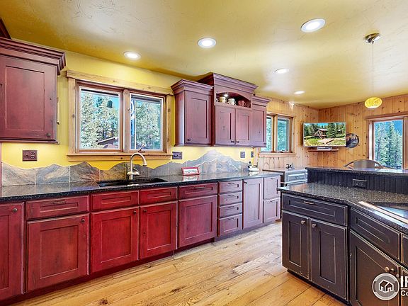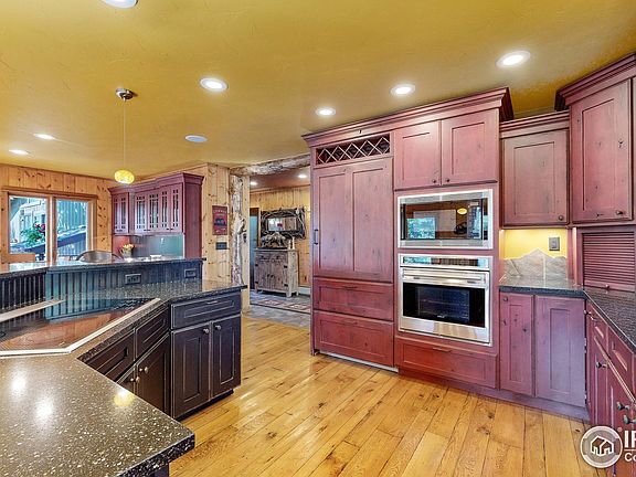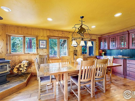 Discover the ideal Mountain Family Retreat; Custom/Updated Home located along the Peak-to-Peak scenic byway has only changed hands once in the last 56 years. Formerly a tree farm, the property spans 6 acres of forest, featuring a year-round 150 ft. access to the Roaring Fork stream, which flows down from Chasm Lake at the foot of Long's Peak and offers magnificent views of Mount Meeker & Twin Sisters. Thoughtfully updated in every room for rustic mountain charm, including a custom kitchen with high-end appliances (Sub-Zero, Wolf, and Asco). You will enjoy plenty of natural light from windows and skylights in almost every room. The house offers 2,650 sq. ft. of main level living with 3 bedrooms, an office, 2 full baths. This includes a custom kitchen and dining area, plus a living room with a full bar. Additionally, there is a 640 sq. ft. garden-level bonus bunk room with a separate entrance that sleeps 6+ with another 3/4 bath - Intentionally designed to entertain! Landscape includes forests, meadows, & distinct rock formations of stellar Rocky Mountain beauty. Wake up to your morning with coffee on a custom Trex deck, sharing time with moose, elk, deer, & hummingbirds that dart across the meadow to hundreds of mountain flowers. Originally built as a log cabin in 1968, with three major additions completed in 1986. Enclosed Dog Run from attached single-car garage keeps your pets safe. Additionally, there is a detached 2-car garage (576 sq. ft.) and a storage shed with a loft for extra storage. 200 Amp electrical w/ 50 amp RV hookup + 50 amps to concrete hot tub pad should you want to add one for premium stargazing. 3 Car Garage capacity + ample storage. Stay warm with your high-efficiency Regency wood-burning stove while enjoying hot cocoa. With 15,000+ trees on this 6-acre paradise, you'll have ample firewood for winters. Located just 12 minutes to Estes Park, Boulder, RMNP + long list of upgrades = the perfect mountain retreat. Call today to schedule showing!