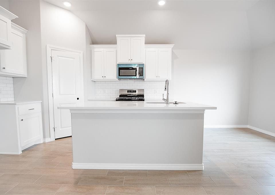 This Bogan floor plan includes 1,510 Sqft of total living space, which includes 1,400 Sqft of indoor living space and 110 Sqft of outdoor living space. There is also a 395 Sqft, two-car garage with a storm shelter installed. This home offers 3 bedrooms, 2 bathrooms, 2 covered patios, an office, and a utility room. The living room welcomes wood-look tile, large windows, a ceiling fan, and Cat6 wiring. The kitchen has 3 CM quartz countertops, stainless-steel appliances, wood-look tile, custom-built cabinets with decorative hardware, and stylish tile backsplash. The primary suite features noteworthy carpet flooring, a ceiling fan, Cat6 wiring, and perfect-sized windows. The upgraded primary bath offers a dual sink vanity with an elegant countertop selection, a tub/shower combo, an elongated water-saving toilet, and a walk-in closet! The outdoor living area is covered and has fully sodded yards with a water saving sprinkler system. Other amenities include a tankless water heater, a fresh air intake ventilation system, R-15 and R-38 insulation, an air filtration system, and so much more!