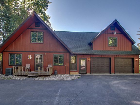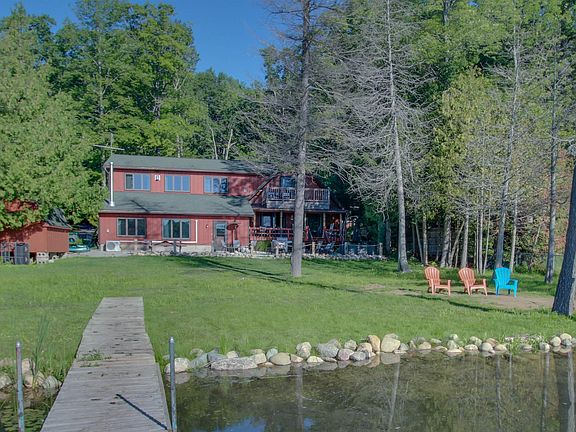 The perfect Northern Michigan Retreat Exceptional 6 BR home with many recent updates that sets on 100 feet of private Cedar Hedge Lake frontage, an all sports lake located near Interlochen. Quiet and peaceful setting, surrounded by other lakes, trails and State Forest land, yet only minutes from downtown Traverse City. The home features two living areas directly facing the lake, large patio perfect for entertaining, covered porch, main floor bedroom/laundry and central air. The upper level features a large bunk room with an additional separate entrance, plus four additional bedrooms. Other amenities include a fenced in yard, heated oversized garage, updated kitchen with Corian counters, wood stoves, laminate and tile flooring, level lot for easy access to the lake. The home is currently licensed as a short term rental with the township for the 6 bedrooms and includes a brand new septic system. Rare opportunity to purchase a well maintained home large enough for all your family and friends in a truly scenic and private setting.
