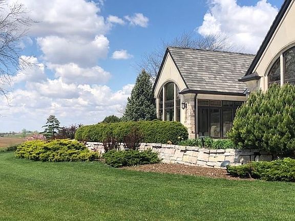 Nestled on 8.24 lushly landscaped acres, this single story ranch-style manor is an idyllic retreat, or work from home, with views of rolling hills, farmland, and golf course. As soon as you enter, the splendor will continue to delight. A great room and wet bar perfect for entertaining will quickly become the favorite spot for friends and relatives to gather around, and the gourmet, eat-in kitchen will serve as the meeting place for intimate gatherings and grand events. With four spacious bedrooms, detached guest quarters, a heated garage, and an unfinished, walk-out basement, there's plenty of space for all your hosting and hobbies. Whether taking a dip in the in-ground pool, admiring the calming views of the pond on your property, or visiting one of many nearby golf courses or parks, calling Jewel on the Prairie Estate "home" is the key to a life of well-lived luxury.