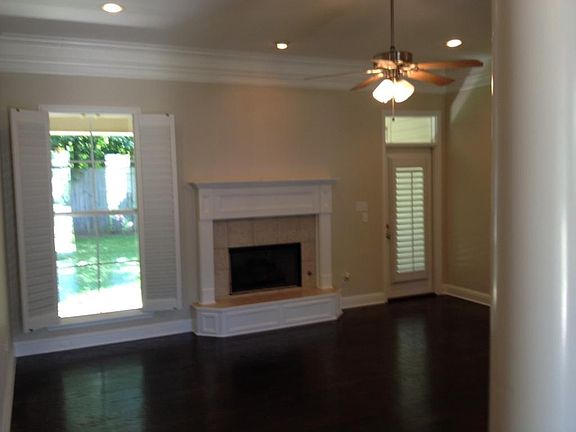 Outstanding covenant restricted gated community. Completely remodeled kitchen with stainless steel appliances, granite countertops, and recess lighting. Large breakfast bar in dining area off the kitchen with open floor plan between the living room and kitchen. Living room has gas fireplace, refinished hardwood floors, neutral colors throughout the home, and new carpets in the bedrooms. Large remote master suite with trey ceiling and a Master Spa. Master Spa amenities include double vanity, 2 separate walk in closets, whirlpool tub and shower stall. The 2 guest bedrooms share a full bath. Nice size utility/mud room with sink and large cabinets great for storage. This home has an alarm system installed tenants are responsible for the service. Two car garage with remote garage openers for the cars. Beautiful plantation shutters on all windows. Large backyard with mature trees great for entertaining and the front yard is landscaped. Backyard maintenance is tenant responsibility.