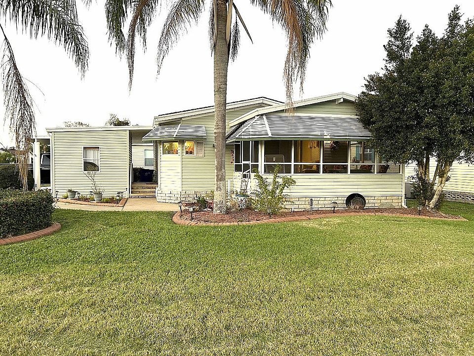 2 BR 2 BA 960 SQ FT open floor plan is located in 55 plus park on corner lot. Furnished and turnkey. New laminate floors, New refrigerator, new mattresses. Has double Drive carport, Storage shed, Nice Front Screened Lanai to relax or entertain. Kitchen open to living room and dining room. Large rooms and closets. Beautifully landscaped. New Roof Priced to sell.