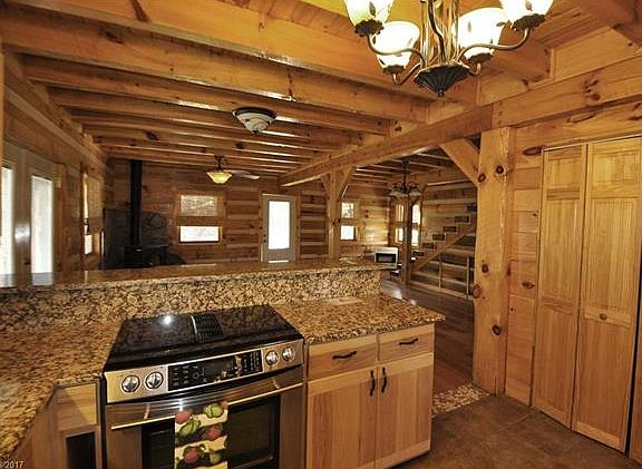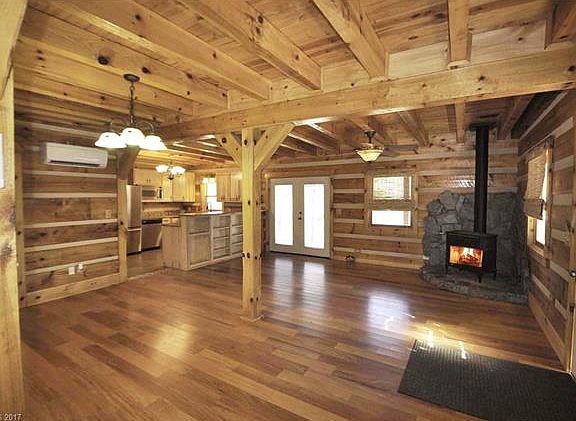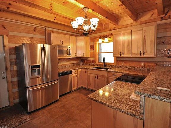 Authentic White Pine Log Home with covered porches~ Logs came from property! End of road Privacy,Open floor plan, Hickory Cabinets,wood floors, slate tile, whirlpool in master, New Stainless Steel Appliances, backyard covered shed and fire pit for entertaining. Quality built workshop/barn with electricity, shed,(could be a great art or wood working studio) Fruit Trees, the best Spring water! Property is completely fenced in; Great for horses~Dont miss this one!! We are sad to see it go but must relocate. I will miss this little slice of paradise and the best neighbors I have ever had! We are MOTIVATED SELLERS SO BRING YOUR OFFERS!