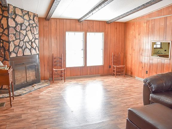 Discover 24X60 double wide with like a cabin feel on 4.21 acres. 3BR, 2BA, great room with fireplace, open & split floor plan. Hardwood floors throughout home. Large front & back porch. Enjoy peaceful country setting near Columbus.