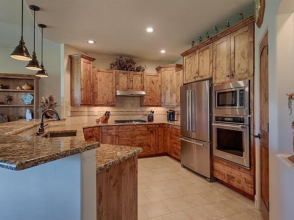 Perfect lock and leave, spend your time playing golf in beautiful Montrose during the summer and spend you winters away if that's your choice. The HOA on these units maintain you yard year round so it's the perfect scenario. This quality home has 3 bedrooms or 1 is currently being used as an office. It is a split floor plan and very open. Custom Kitchen with stainless appliances, walk in pantry, bar stools to match the dining light fixture which are both included. Solid Wood custom kitchen cabinets and wood bookshelves/curio cabinets in the living room to match the kitchen cabinets. Actually the doors and cabinets are solid wood throughout the house. There are nice large windows and patio doors out to the covered wrap around patio where you can enjoy your morning coffee or evening wine and a great place to sit and catch a few groups of golfers passing by. Throughout the home you will find custom designed drapery and blinds will stay with the home. A large 5 en-suite master bath with a large walk-in closet. Just outside of the master and nearby the garage is a well designed laundry room with a nice wash and dryer included but it's the tiled shelves and cabinets that will get your attention. So well organized. Out to the garage, where you will find selving, wooden work benches and the third garage is just made for your golf cart or your toys!!!. It's a great home in a beautiful and well maintained neighborhood.....