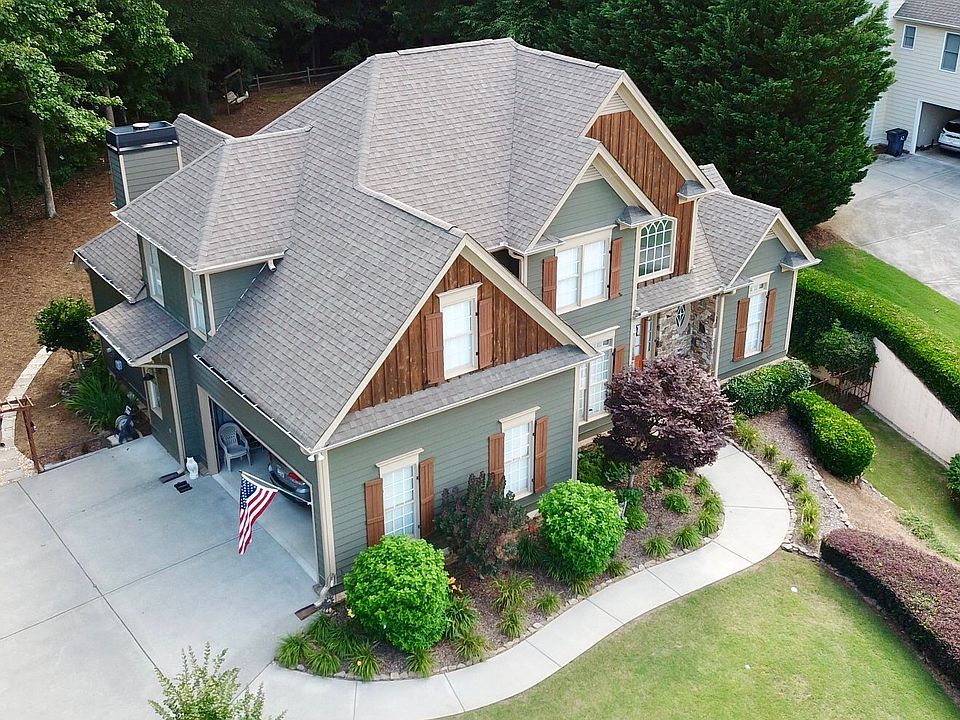 Master on Main! Extra LG Bedrooms upstairs with Jack-N-Jill BA w/3 sinks. Enjoy Coffee on your Private Screened in patio and walk out deck to back yard great for Entertaining. Large garden shed attached to the home. Don't miss any Game or Movie in your basement custom Man Cave with theater Room. Full bathroom in basement. Daylight basement gameroom or office with lots of windows and French doors opening to gated courtyard with decorative antique iron fence. Also has some Unfinished basement storage space and a workshop. This Spectacular Private home has Mountain Views. Upgrades include: Refinished Hardwood Floors (kitchen; keeping room, dining room; powder room). New carpet in upstairs 3 bedrooms, hall. Updated granite countertops in kitchen with new sink and faucet, new stainless appliances. Updated quartz master bathroom vanity top with new sinks and faucets, new frameless shower enclosure. New A/C unit in attic (2018) newer main A/C unit. Water Heater, Water Filtration, Sod, irrigation system, and neutral paint colors. Surrounded by natural beauty, Short walk to Creek/ Shoals , Award Winning Schools, Tennis, and pool, and Green Belt comity with walking trails.