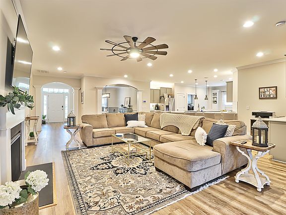 - Fireplace, Window Treatments, Breakfast Bar, Bedroom on Main Level, Entrance Foyer, Kitchen Island, Stainless Steel Appliances, Solid Surface Counters