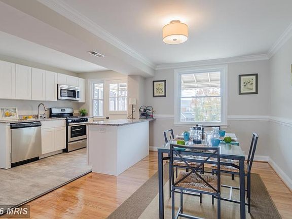 PICTURE PERFECT DESIGNER RENOVATION WITH 3 FINISHED LEVELS & PARKING! Open floor plan, hw floors throughout, spacious LR & sep dining room w/ crown molding, custom kitchen w/ granite counters & ss appliances, upper level w/ 3 bedrooms & 1 full bath, finished basement w/ family room, full bath, & laundry/storage area, walkout from basement to rear yard & parking pad! Pack your bags & move right in!