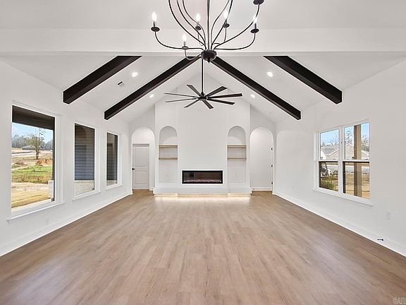 This modern farmhouse boasts a charming combination of style and functionality. With three bedrooms and two and a half baths, it offers plenty of space for family living. The open floor plan enhances the sense of space, making it perfect for both entertaining and day-to-day activities. The durable vinyl flooring throughout adds a contemporary touch while ensuring easy maintenance. Each bedroom features generous walk-in closets, providing ample storage. The vaulted ceilings in the living area and master bedroom create a light-filled, airy environment that adds to the home's appeal. The master suite includes a luxurious walk-in shower, offering a spa-like experience at home. Outside, the expansive yard provides plenty of room for outdoor activities, gardening, or simply enjoying nature. This modern farmhouse combines comfort with elegance, making it an inviting retreat for modern living.
