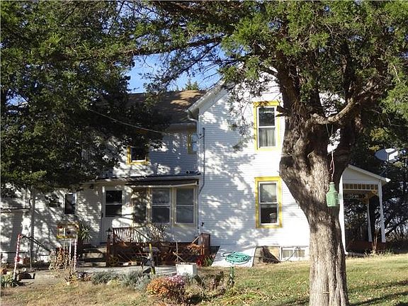 Serene setting for this 2 story farmhouse with the charm & character of a bygone era. Great location! Sitting on 8+ acres in the country, it is an easy drive to Lawrence or Johnson county, all on paved roads. Nice yard with huge trees, a detached garage/workshop & several farm buildings. Beautiful original woodwork and floors on the interior. Maintenance free siding and thermal Pella windows have been added in recent years. Central heat and air on main floor, vents allow heat to rise to the 2nd floor.