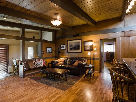 Step into your own tranquil oasis! Treasured custom mid-century style home in Tulare. Huge quarter-acre lot is fully landscaped. The mature trees, fish pond, gazebos and raised flower beds will provide you with your own peaceful paradise. The interior of the home has beautiful vaulted wood and beam ceilings, and upper windows to allow more natural light. The separate wine or coffee bar is the perfect spot to start your morning. Granite countertops modernize the kitchen. In the separate dining area, you will find large picture windows and sliding doors with wood blinds., and its own fireplace. The master bedroom suite includes its own bathroom, vaulted ceilings with ample windows and an upper storage. Custom barn door style closet doors add a desirable design element. In addition to so many amazing features, there is also RV parking and additional shed. Come and see this gem before it goes!