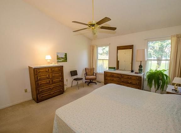 This home is an absolute stunner. Greeting visitors is a lovely foyer entryway illuminated by a skylight. It then opens into the Great Room that features a spacious floor plan, open concept, and elegant fireplace. Several lights and a fan hang from the majestic cathedral ceiling. The Master Bedroom has a cathedral ceiling with a ceiling fan, walk-in and secondary closets, and Master Bathroom. The other two generously-sized Bedrooms have ample closet space and a separate full-bath. The Kitchen, with a vaulted ceiling, offers a pantry, patio door, and abundant cupboard space. Dishwasher, oven, washer, and dryer are all included! The 600 square foot partial basement presents numerous opportunities of utilization. Finally, this home is accentuated with splendidly arranged rosebuds, daffodils, snowball bushes, and forsythias in its beautiful landscape. Come take a look!
