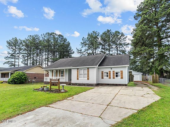 Welcome home to your single story home. Enter your home in to the foyer and be greeted by a bedroom on your right. Following through you'll find the living area is a cozy wood-burning fireplace, ideal for creating a warm and inviting atmosphere. The living room opens to the kitchen. The split floor plan gives you two additional guest rooms to the left of the living room, along with the guest bathroom. Through the kitchen you'll find the laundry room and the primary bedroom with en-suite. Enjoy entertaining, play time or relaxation in your spacious backyard. The property includes a spacious two-car detached garage, with a 1,000 pound compressor, perfect for vehicles and additional storage. The main HVAC was installed in February 2023. There is a separate system for the right side of the home. If you want to be close to Fort Liberty and a number of amenities, this home is for you!