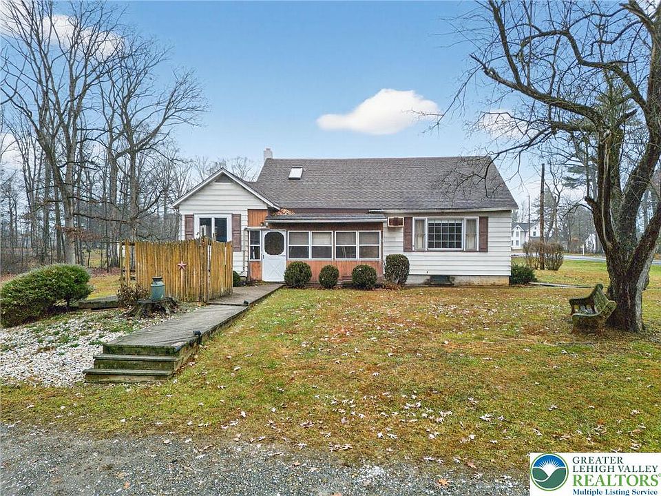 Nestled in a prime location within the highly sought-after Nazareth School District, this MOVE-IN READY Cape Cod rests on 3.8 serene acres of flat, partially wooded land that borders state game lands, offering a beautiful natural backdrop, walking/riding trails, and a unique connection to the outdoors. The 1555 sqft residence welcomes you with timeless hardwood floors, a spacious living room, a dedicated dining area, and a beautifully functional kitchen enhanced by a peninsula perfect for cooking, gathering, and everyday living. With 4 bedrooms—two on the main level and two upstairs—the home provides comfort and flexibility for a variety of lifestyles. An enclosed porch, side patio, and expansive yard create exceptional spaces for relaxing or hosting friends and family, while the carport adds practical covered parking. Enjoy low taxes and unparalleled proximity to major highways, shopping, restaurants, hospitals and more. This is a truly exceptional setting where space, convenience, and potential come together beautifully. With a touch of TLC, this house can become your home! Call today to schedule a private tour!