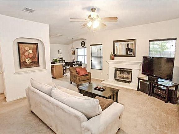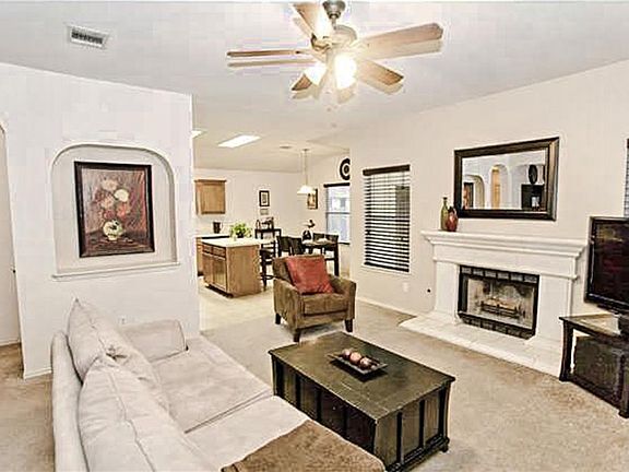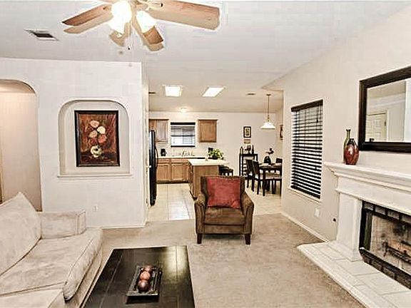 Just a few steps to the PARK and POOL! SPACIOUS ONE-STORY home with LOTS of natural light. The open floor plan is so inviting and is perfect for large family gatherings! Gorgeous Fireplace, Island kitchen for the gourmet cook and a private Master Suite with a BIG walk-in closet make for easy living! The Patio and Backyard extend the opportunity to entertain outdoor while the kids play! The location near the park and the home's amenities will make this go quickly so HURRY to see it!