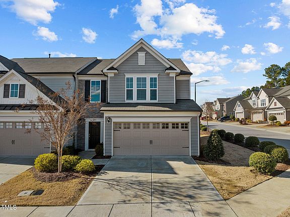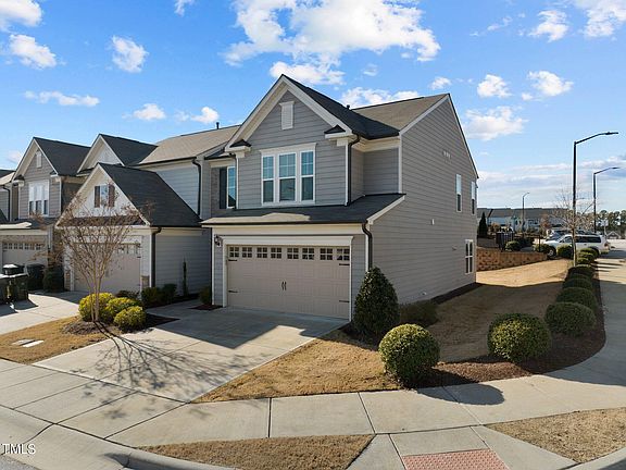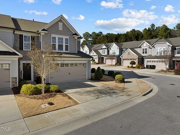 Step into sunshine in your meticulous end-unit townhome in the perfect location! Main level features an open floorplan with well-defined spaces that is perfect for entertaining, with a private patio just off the dining room. Beautiful, dark wood cabinets, granite counters, stainless appliances and chef-quality gas stove. Upgraded flooring throughout main level, and carpet on second level. Owner's suite with vaulted ceiling, huge walk-in closet, and private ensuite bathroom. Dual vanity sink, oversized walk-in shower, and water closet. Freshly painted, and move-in ready, easy proximity to RTP, I-40, Hwy 147 extension, Southpoint Mall and much more! Community amenities include playground, dog park, gazebo with fire pit and nature pond with walking trail surrounding it.