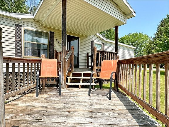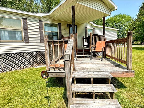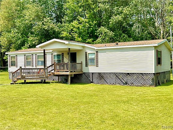 Looking for an affordable place to hang your hat near Sylvan Beach? Brand new in 1990, this spacious double-wide might be it! Ascend the double deck and enter to find a large living room adjacent to the incredible primary suite with the largest bathroom ever! The kitchen, dining area, and fireplaced family room provide plenty of space for quality time and memorable meals! The laundry room, half bath, and large walk-in pantry/closet are off the kitchen! You’re going to love having decks on both sides of the home! The electric was updated less than 4 years ago. The 30-year shingle roof was installed in 2006 and has plenty of life left in it! With Onondaga County water/sewer connections you won’t have a well or septic system to maintain! The stability of the home is reinforced by 32 cement pillars, each measuring 3-3.5 feet deep, offering a solid foundation you can rely on. Located less than 2 miles from the popular Sylvan Beach Boardwalk, you'll have endless opportunities to indulge in outdoor activities, enjoy the sunset, and create cherished memories. Don't miss out on the chance to make this extraordinary double-wide your forever home or your vacation retreat!