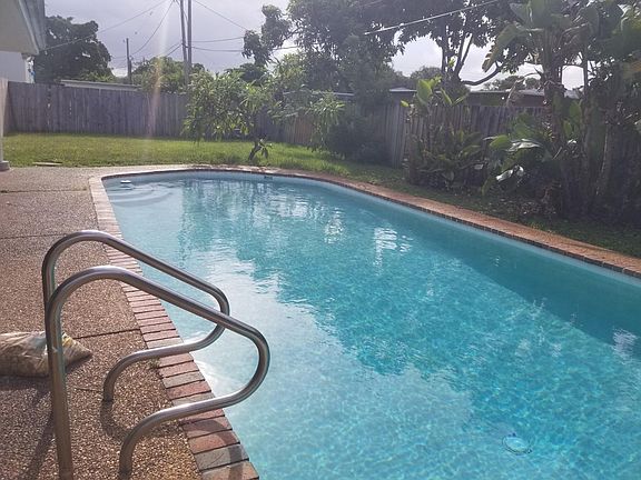 Updated home on 11,000 sq.ft. fenced lot with a gigantic pool, a huge covered patio, circular driveway behind fence, central A/C, tile floors throughout, new french (impact) doors to patio, bright new kitchen with window over sink and view of pool. Located in trendy Middle River Terrace, just 3 minutes to Wilton Drive, about 3 miles to the BEACH, 5 minutes to downtown or Las Olas, and 5 minute to I-95. F/L/S, credit report, Application (no charge), employment & rental references, no evictions. ONLY SMALL DOG, NO AGGRESSIVE BREEDS. Dog OR cat, not both. Owner pays pool and lawn mowing; tenant pays water, electric, cable