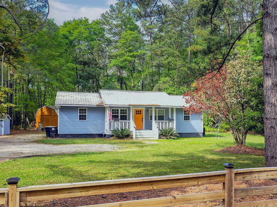 Looking for the serenity of country living with out being too far from shopping and entertainment? Here is your chance to own a beautifully renovated turn-key home with nearly 1 acre of land in the rapidly expanding Ridgeville area. This location is prime with quick access to HWY 176 and both the Volvo and Ridgeville exits on I26 making. Upon entering the home you will notice the easy flow of the open floor plan, lofted living room ceiling, and beautiful shiplap feature wall. The kitchen has gorgeous granite countertops, soft grey cabinets, plus stainless steel appliances. You'll love the charm of the craftsman trim package and solid 5-panel doors! The spacious primary features an en suite with floor to ceiling tiled shower and dual vanity with a quartz countertop. There are twoadditional bedrooms and a lovely second bath tiled from the tub to ceiling. Out back is a huge deck for grilling and entertaining as well as a fire pit and massive storage shed perfect for a workshop and already has electric ran plus an RV charging plug. Dont miss out of this beautiful property in the pines!!
