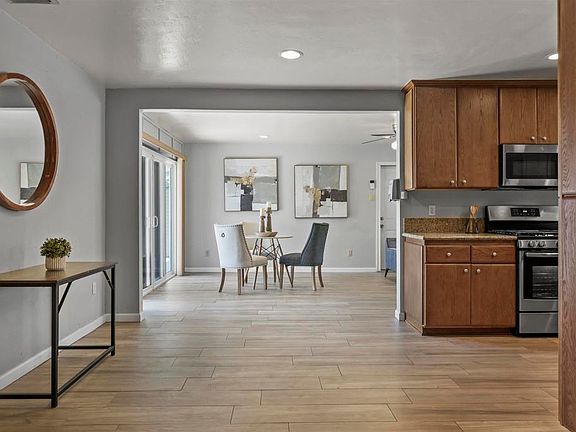 Welcome to this pristine single-story home featuring 3 bedrooms and 2 bathrooms. Move-in ready with granite kitchen counters, stainless steel appliances, and solid wood cabinets. Located on a private drive shared with three other properties, the home offers ample parking and is conveniently close to shopping and the 805 freeway. Fully paid-off solar panels add to its appeal. Don't miss out on this beauty—it won't last long!
