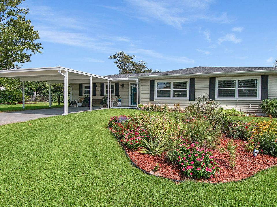 Outside, the charm continues with a beautifully landscaped yard dotted with various fruit trees. Imagine savoring the delightful taste of freshly picked fruits right from your own backyard! The corner lot also provides extra privacy and space for outdoor gatherings, making it an ideal spot for hosting barbecues and enjoying the Florida sunshine..