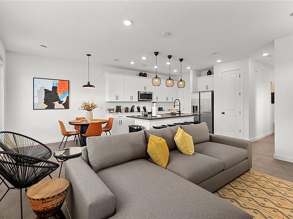 This beautifully designed home is highlighted by a spacious and welcoming living area with modern decor, featuring comfortable furnishings and a serene ambiance. The home boasts a modern, fully equipped kitchen with stainless steel appliances and granite counter tops. Conveniently located near world famous theme parks, great schools, great restaurants and shopping. Enjoy all the wonderful amenities the community offers.