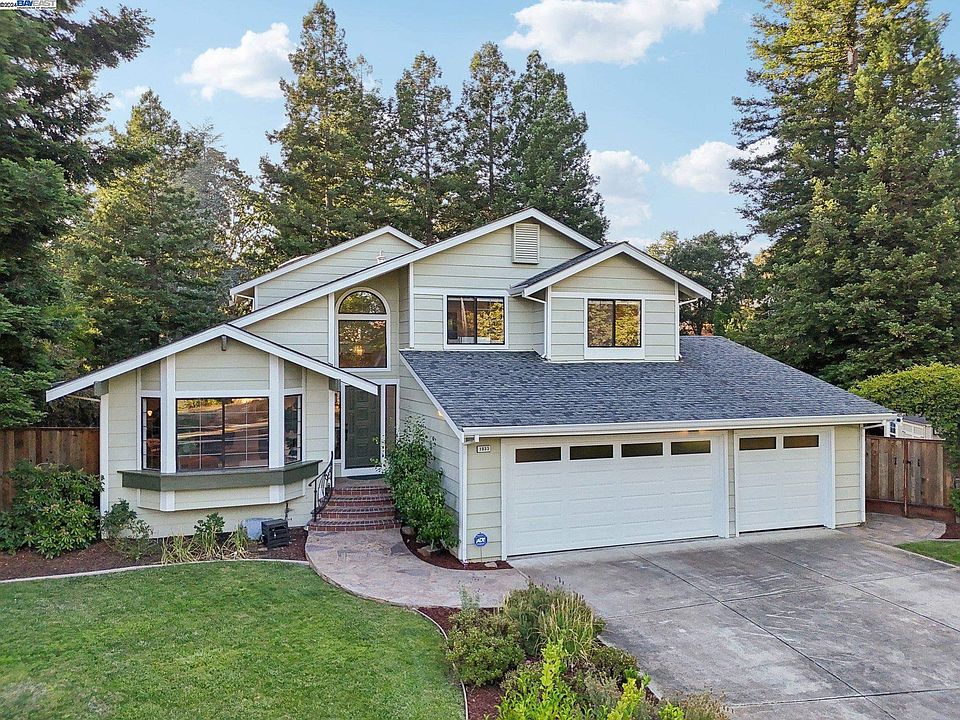 Resort style living in this beauty tucked in the sought after Pleasant Hill neighborhood on .35 acre lot. The park-sized yard has a Tahoe like feel featuring mature redwoods, paver patio and a sparkling pool for those warm summer days. Bonus storage shed which is set up for your own private wine cellar. The interior is light and bright. The stunning entry features vaulted ceilings and an abundance of windows. Hardwood flooring with warm tones planks the main living areas. The kitchen features white cabinetry, granite countertops and recently updated stainless-steel appliances. The family room features a cozy wood burning fireplace, a bar area and access to your beautiful yard. One bedroom and full bathroom on this level too makes for the perfect area for your au pair, company or multigenerational living. Don't miss the finished room in the garage which can be used for your home gym or office. All newer luxury vinyl flooring planks upstairs. The primary bedroom is split level and overlooks the yard. The vaulted ceilings give it a spacious feel and a remodeled true spa-like bathroom with a spacious luxury shower. Two additional bedrooms and updated bathroom top off the interior space. Perfect commuter location with close proximity to BART and freeways. This beauty won't last!
