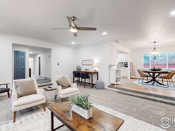 Thoroughly updated and upgraded sprawling Ranch in West Fort Collins on a spacious corner lot. This bright and open floor plan is highlighted with custom lighting, new paint, and flooring including - Engineered Hardwoods, custom tiling and new carpet, throughout. Rare find with a full owners suite including a walk in closet, and a 3/4 bath with a double vanity. Tastefully updated kitchen features new shaker cabinets, quartz counter tops, and all new stainless steel appliances. 2 main level living areas, with plenty of space to spread out. Fully finished basement with additional kitchen and living area makes a fantastic investment opportunity or multigenerational living. Rear entry with direct access to the basement, making it easy to live upstairs and rent out the basement if desired. Nice and quiet backyard, fully enclosed with privacy fencing.