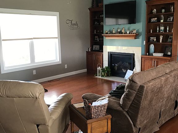 3 bedroom, 2 full bath, open concept, propane gas fireplace. Nice kitchen with island. Master bath has shower and soaker tub. House was built in 2013. 2 car garage with furnace, water heater and water softener in storage closet in garage. This is a great design has 2 bedrooms and 1 bath at one end of house and master bedroom and bath one other end of house! The house has 9 ft ceilings and textured. Beautiful home.