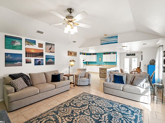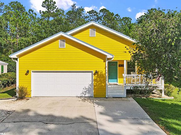 Immaculate home in Spanish Cove! Metal roof! Extra large driveway with plenty of room for an RV. Open concept home that has been well maintained and has a wonderful view of the neighborhood. And it backs up to green space! Fence installed in 2021. Hot water heater new in 2021. HVAC in 2020. Washer and dryer were replaced in May 2023! Shoreline wind rated windows with double strength glass. Storm shutters for all the windows made of a lightweight polycarbonate. Two car attached garage. Hardy board siding. Both bedrooms have walk-in closets. Large master bath. 14x24 workshop with roll up door and a ramp. Located in the highly sought after community of Spanish Cove. Spanish Cove has amenities including: Pool by the bay that is heated during the winter, private security, trash service included in dues, Private Bay access and fishing pier, community activities, club houses and so much more. Spanish Cove is also a golf cart community! 15 min to Perdido Key beach and 20 min to Foley. Shopping 15 min away (grocery 5 min). Pensacola is a short trip. Lillian is nestled in between Orange Beach and Perdido Key. An Oasis away from tourism, but close to the beaches!!!!
