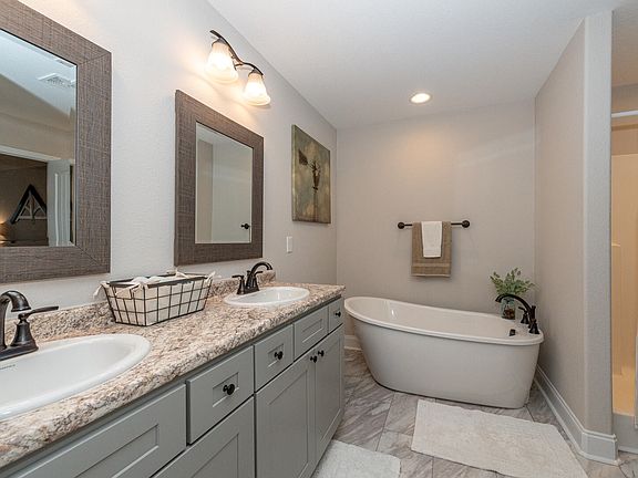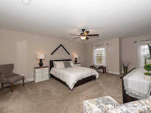 Nearly new home with tasteful decorating ideas. Main level includes living room, dining, kitchen/breakfast with 6' x 3' island and tiled backsplash which compliments the granite. The breakfast area exits to the deck. Sellers added built-ins for a drop-off area and pantry which provides convenience to the garage. Upper level has spacious master suite, two additional bedrooms, laundry which will have a washer and dryer waiting, and a large bonus room which can be used as the fifth bedroom. Basement concludes this home tour with a den, bedroom, bath, and finished storage. You can exit the basement den to a patio in the backyard where sellers have added shrubbery and the yard extends past the wooded area into the clearing, marked by stakes. A bench built for the firepit will remain.