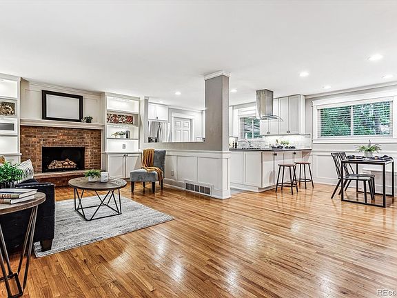 Immaculate 6 bedroom, 3 bath home in Lakewood's coveted Sun Valley neighborhood. Perfectly situated near Addenbrooke Park, Green Mountain, Downtown Denver and the Mountains, this well-built brick ranch home is the perfect blend of custom features and modern improvements. The moment you walk up to this extraordinary home, the quality craftsmanship will immediately capture your attention. It starts with stunning curb appeal that includes a stately pergola, beautifully kept landscaping, mature trees, stamped concrete porch, and decorative lighting. Inside you will find custom features like built-in shelving, craftsman window trim, crown molding, and hardwood floors. The open-concept main floor includes a beautiful kitchen with tall shaker style soft-close cabinets, slab granite countertops, and high-end stainless appliances. The kitchen flows beautifully into the living room with a fully functional wood-burning fireplace, and large picture windows that drench the home with natural light. On this same level, you will also find three well-finished bedrooms; one which serves as the primary suite with an attached bath that includes a luxurious multi-head shower. In the basement you will find three additional bedrooms, an updated 3/4 bath, tons of flex space, and an ornamental fireplace. Make your way to the backyard and enjoy the large, fully fenced private backyard with beautiful trees, recently updated landscaping, a covered porch with ceiling fan, and a storage shed. Additional home features include a new furnace, newer hot water heater, an egress window in one of the basement bedrooms, front and rear sprinklers, and a large two-car attached garage. This home is truly a Lakewood gem!