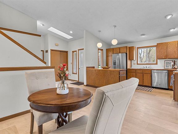 Lots of living space in this light-filled, 4 bed/3 bath, One-owner home. Step into the large foyer that opens to the main-floor kitchen & dining area. Vaulted ceilings give a spacious, open feeling. Convenient to both foyer & garage is a handicapped-accessible half-bath that Sellers included in the original design plans. Kitchen has 2 pantries and lots of cabinet storage. Glass sliders lead to large screen porch and newly refinished Deck. WALK-OUT family room leads to professionally landscaped gardens featured in the 2022 Iowa City PROJECT GREEN Garden Tour. Back yard nearly fully fenced w/privacy fence in the rear. Primary bedroom has adjoining bathroom and double closets, as do the hallways. RECENT UPDATES: 2023-NEW interior paint & flooring throughout. 2022-NEW Water Heater; NEW Toilet; Windows and whole home professionally cleaned. Basement has a handy sink and is perfect for workshop or hobbies.